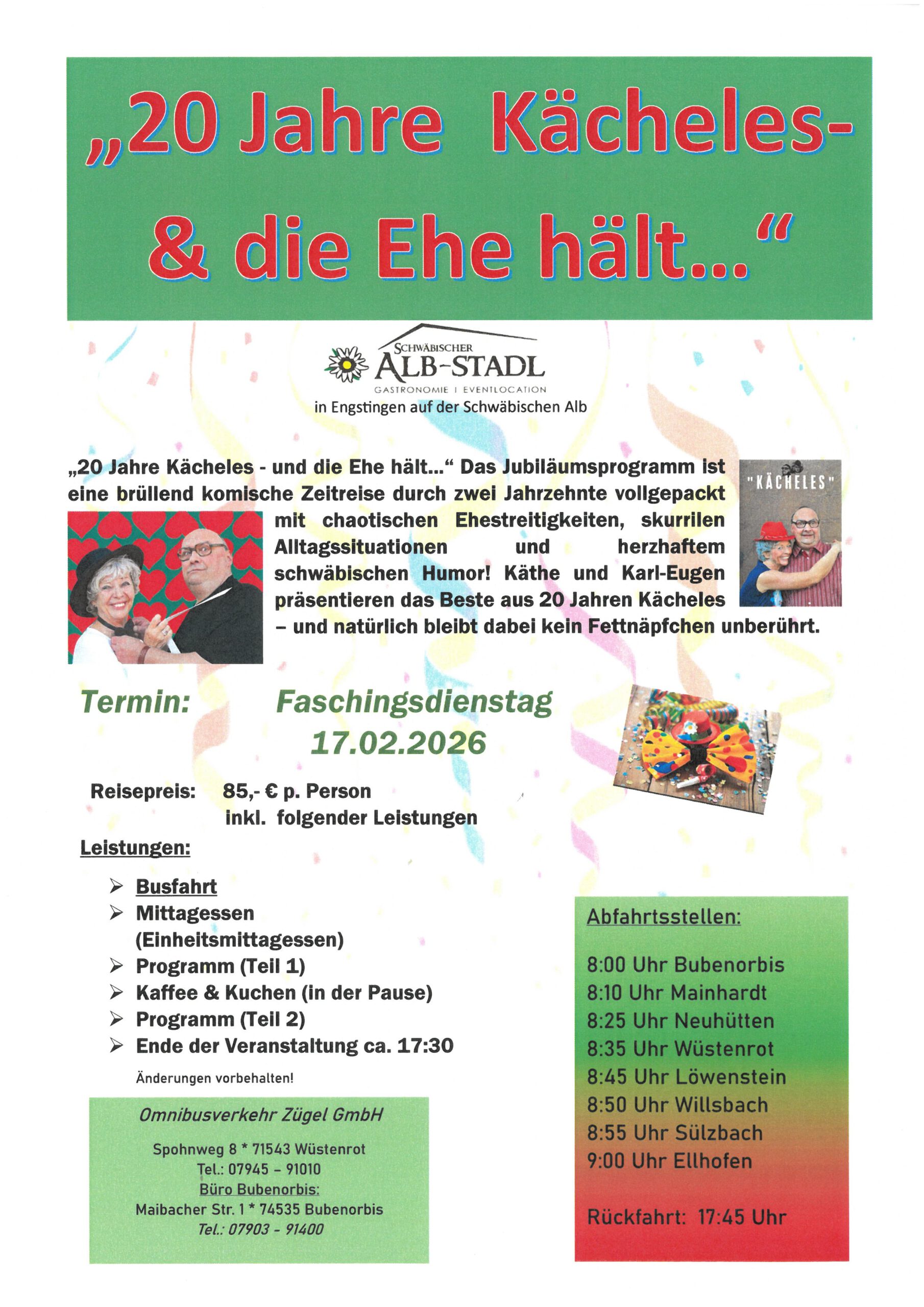 „20 Jahre die Kächeles“ Dienstag, 17.02.26
