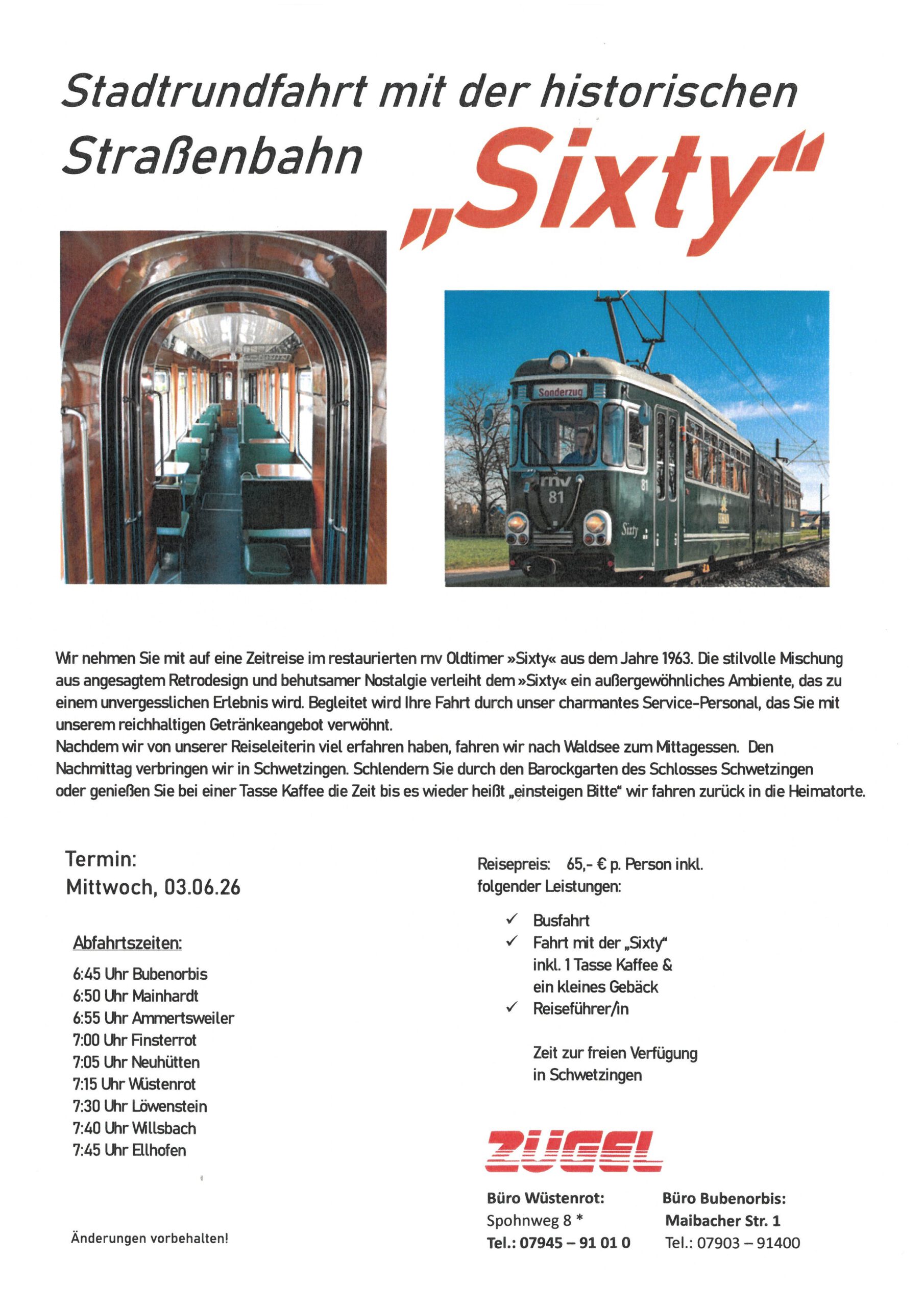 Genießen Sie eine Stadtrundfahrt mit der Historischen Straßenbahn „Sixty“.