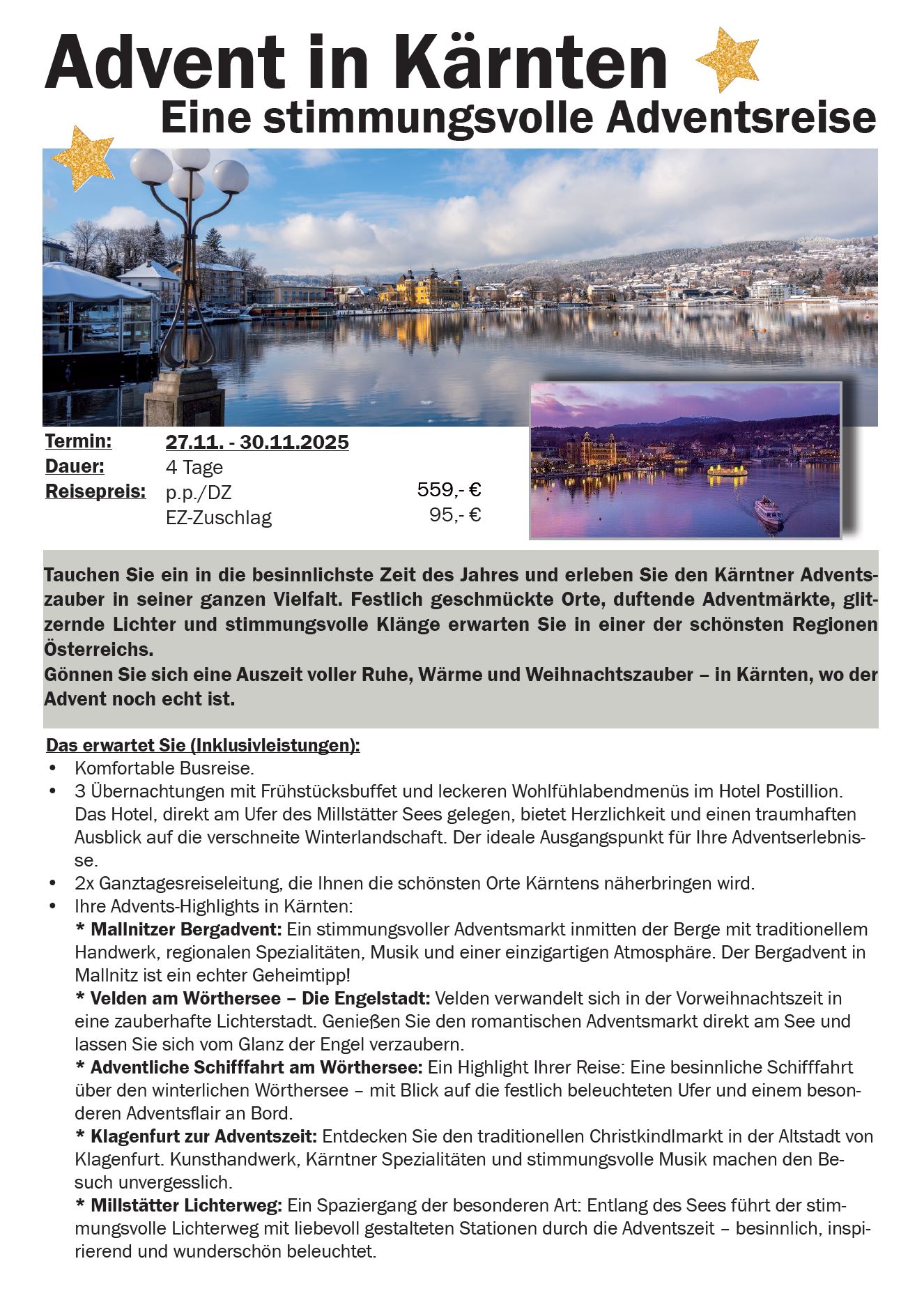 Advent in Kärnten * Do. 27.11. – So. 30.11.25