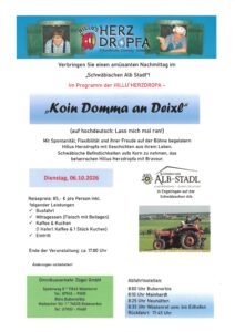 Hillu´s Herzdropfa * Dienstag, 06.10.2026