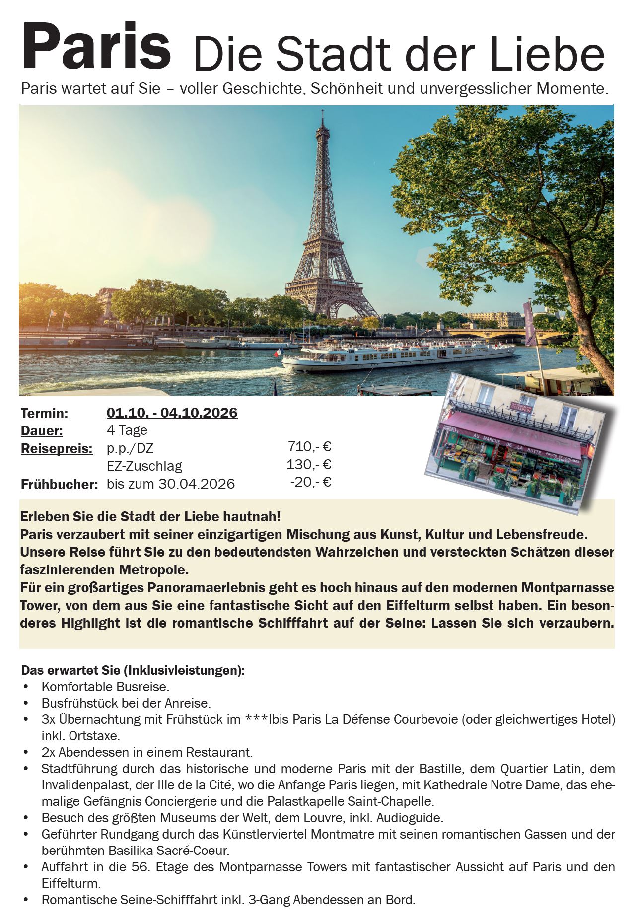 Paris „La ville de l’amour“ wartet auf Sie. Die Stadt ist voller Wahrzeichen und versteckten Schätzen.